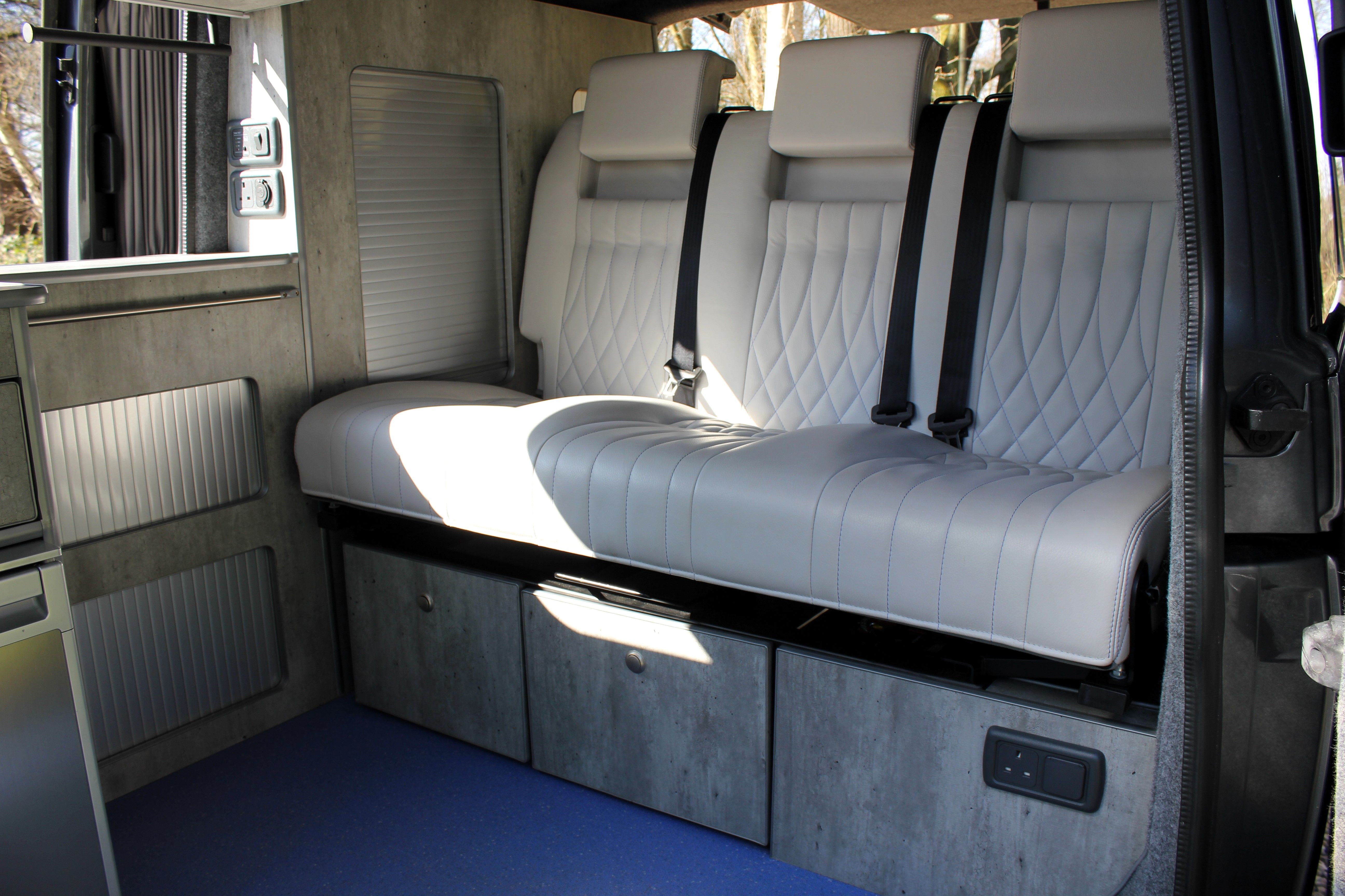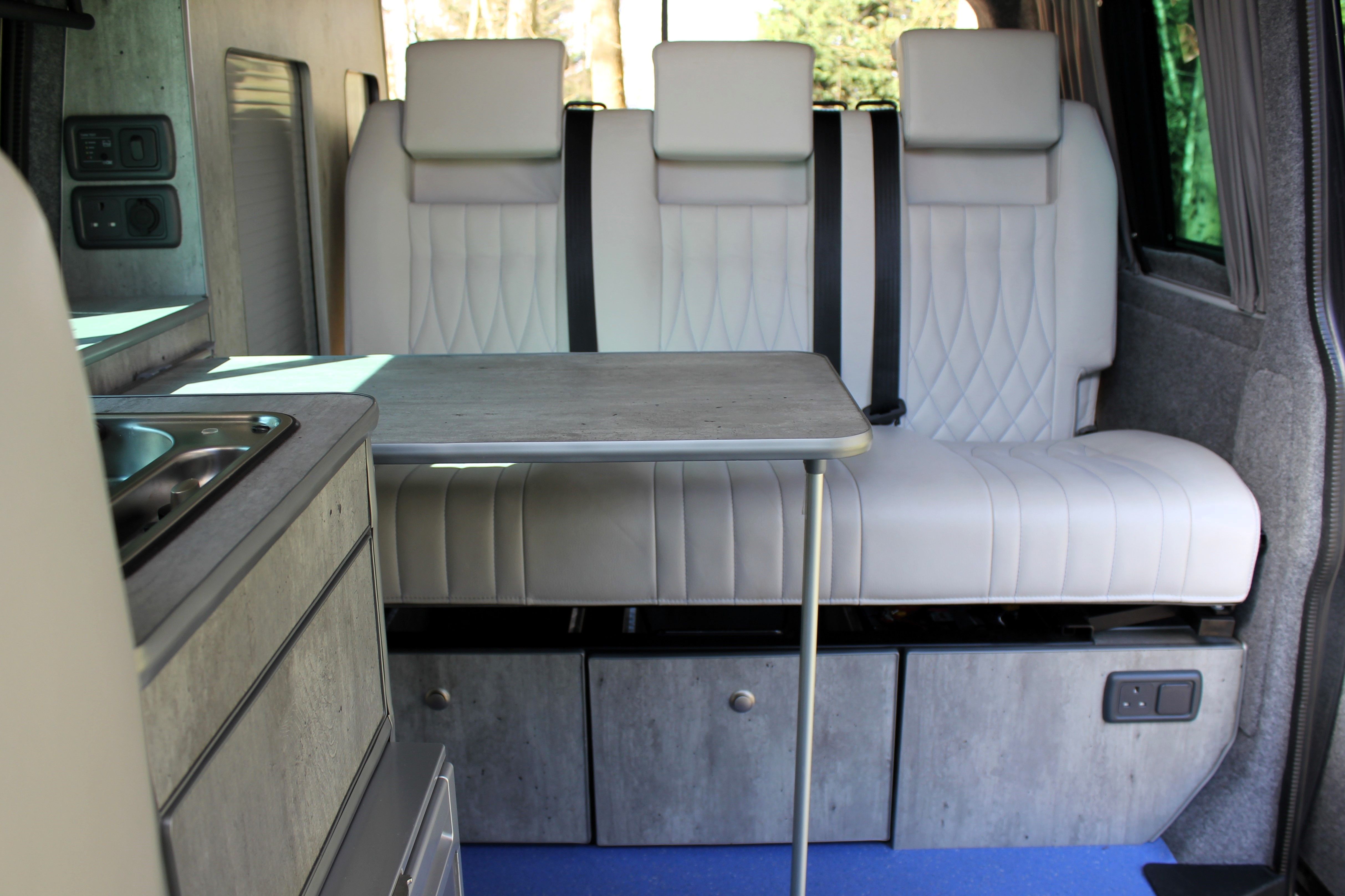 This pre-loved Cragwood Campervan was built on a 2017 short wheelbase Volkswagen T6 Kombi chassis with DSG Automatic box and is finished in the sought after Indium Grey Metallic. With only 2 owners from new, and full Volkswagen service history, this 5 seater, 4 berth, campervan is the ideal solution for those wanting five travelling seats, a DSG box and a wider 129 RIB bed, for that added comfort and flexibility day and night.