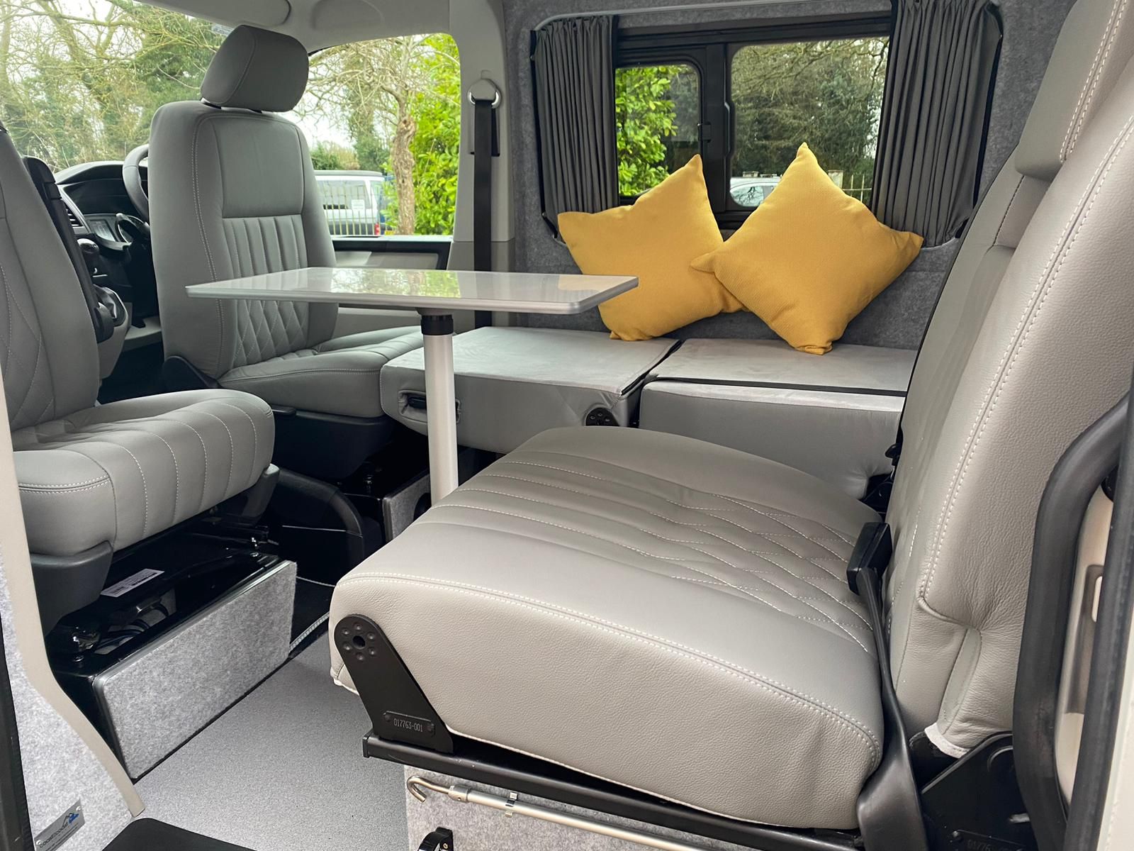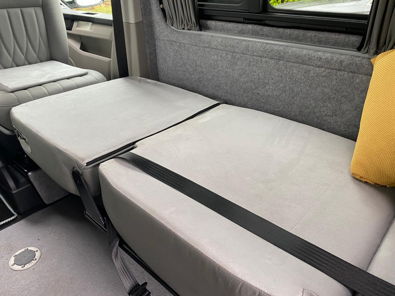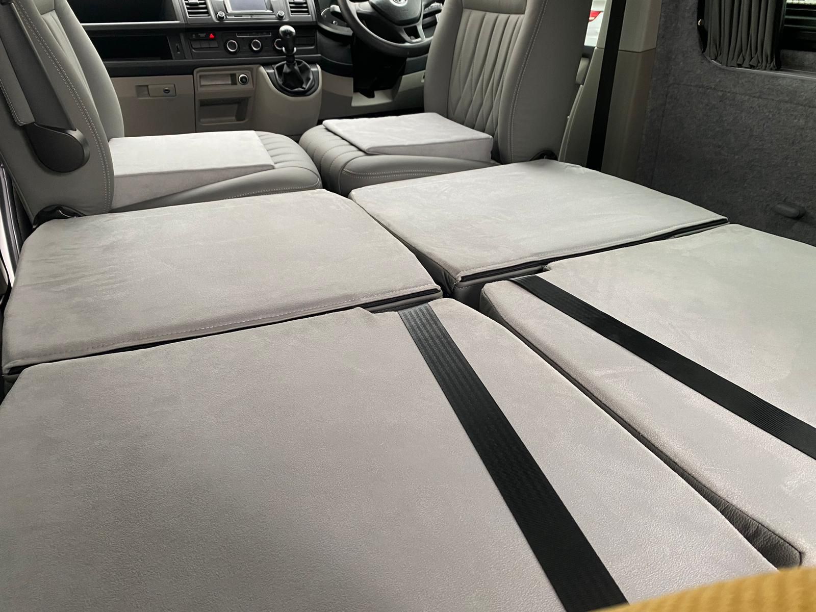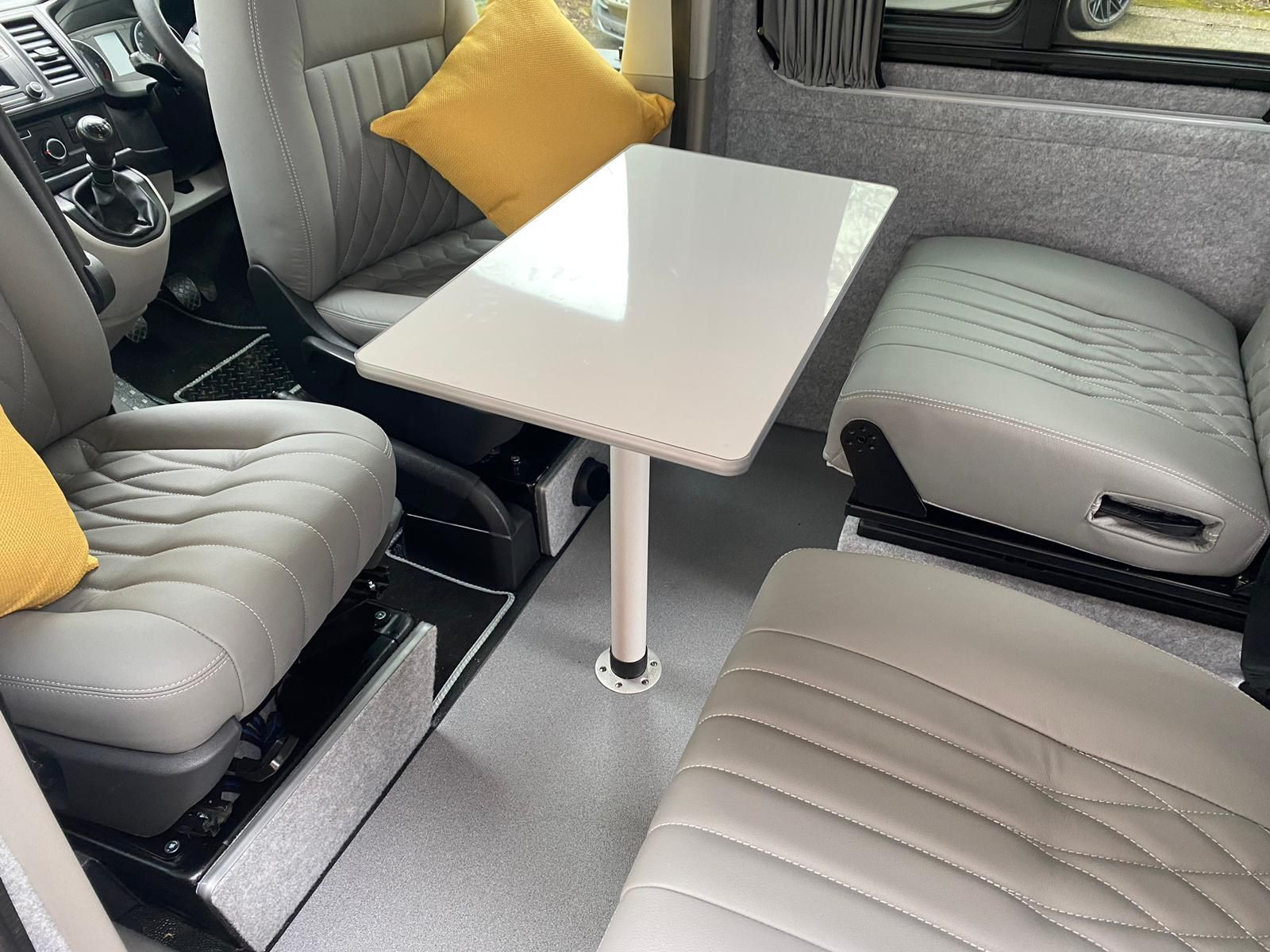 2019 VW LWB T6 2 LTR (102PS) Manual with Volkswagen factory fitted high top roof, complete with coast2coast Campers Harvington rear kitchen campervan layout, with fitted flush toilet system.