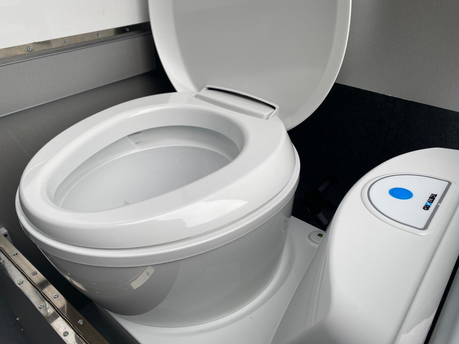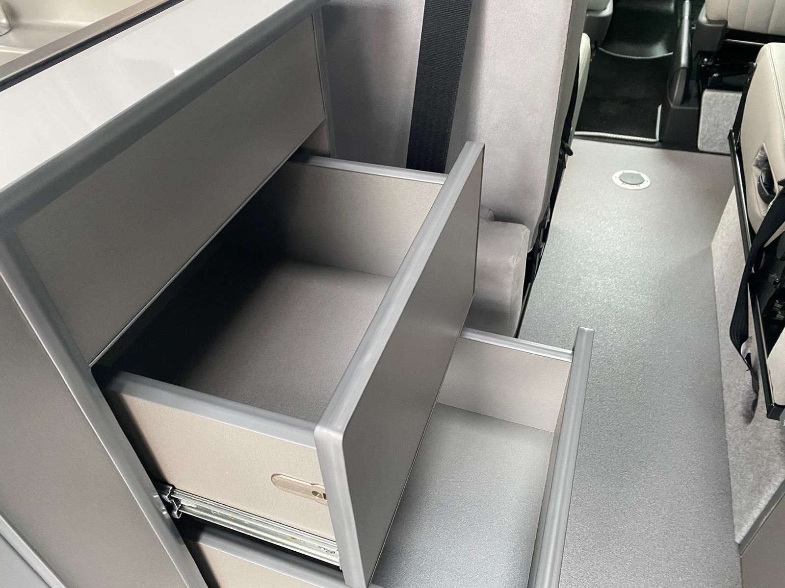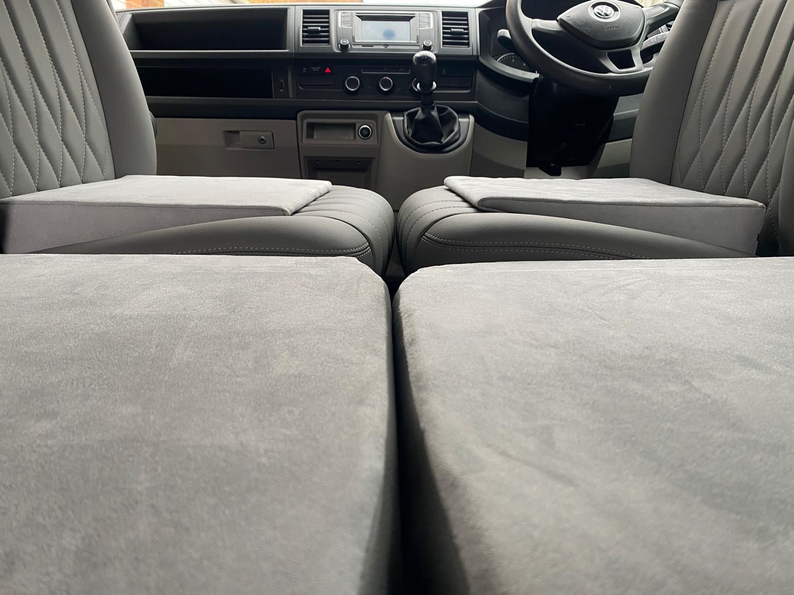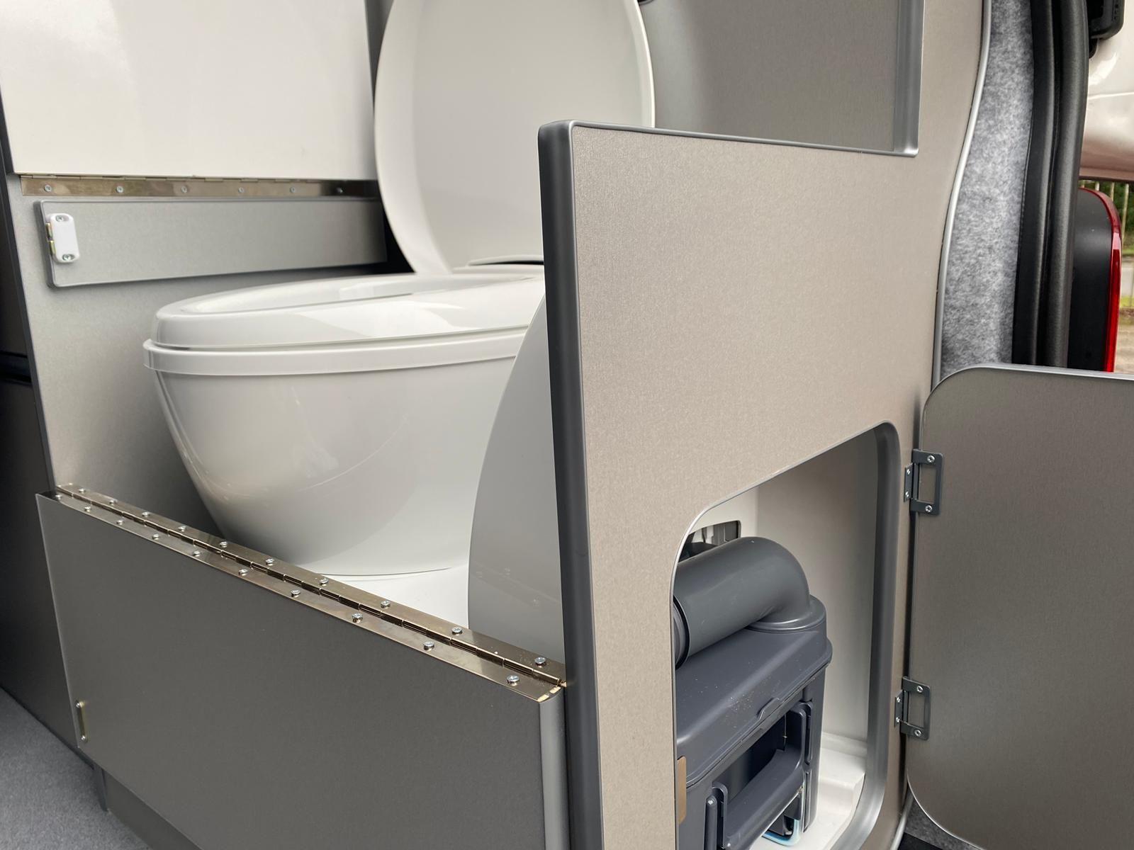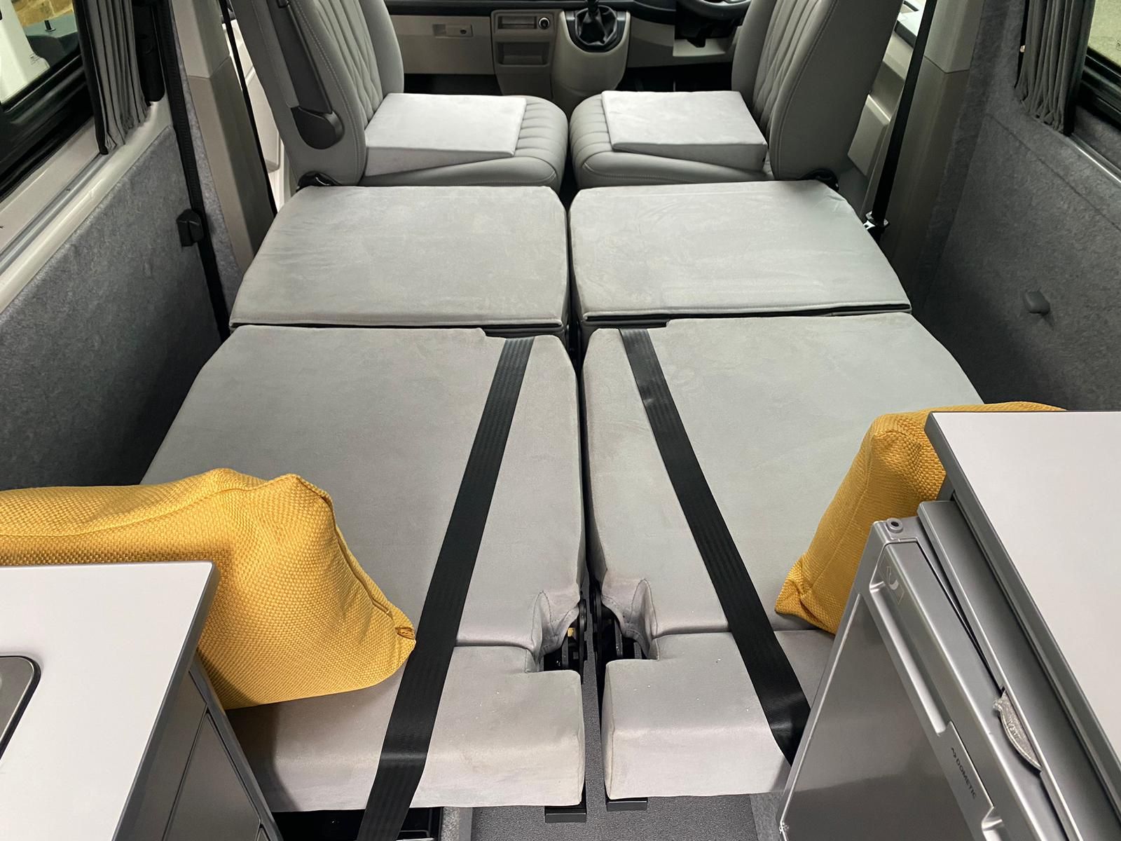 2019 VW LWB T6 2 LTR (102PS) Manual with Volkswagen factory fitted high top roof, complete with coast2coast Campers Harvington rear kitchen campervan layout, with fitted flush toilet system.