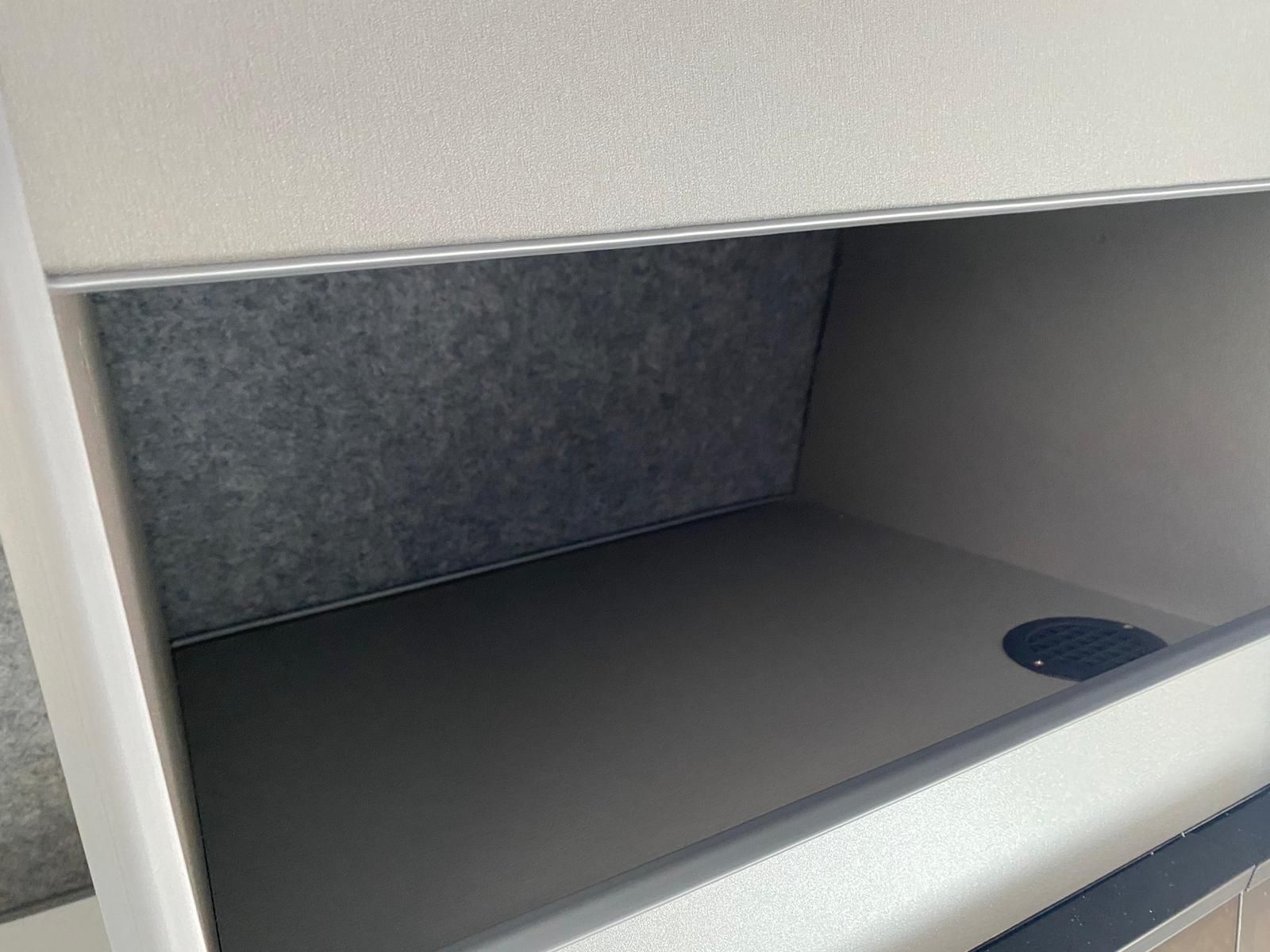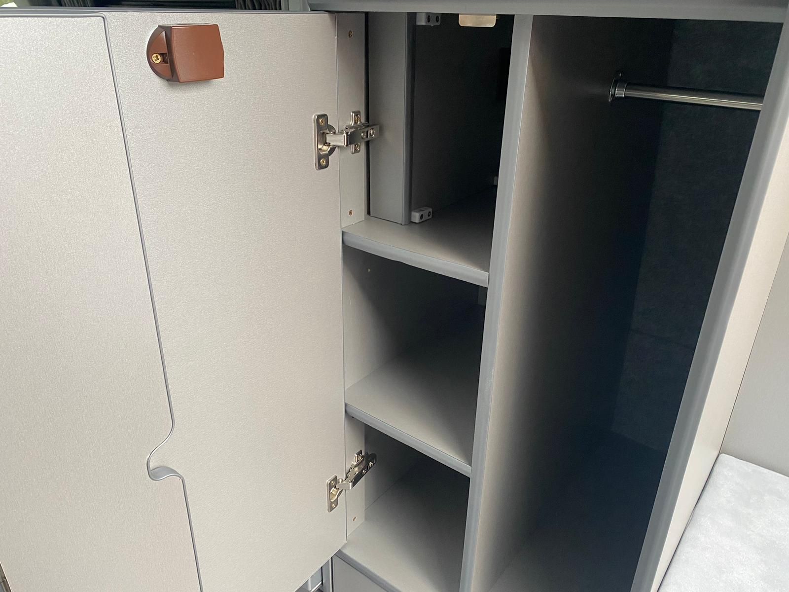 Handcrafted furniture with extensive cupboards in lightweight Vohringer with tambour doors
